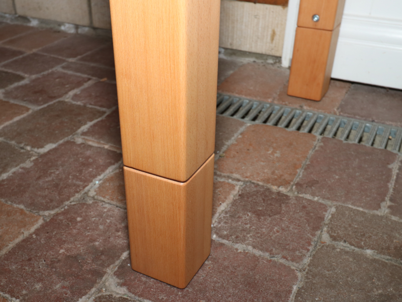 Damit auch kleine Kinder beim Keksebacken am Tisch arbeiten können, sind die Tischbeine zweigeteilt. Wenn man den unteren Teil abnimmt, sind die Tische ca. 15 cm niedriger. - Foto vom 17.10.2025