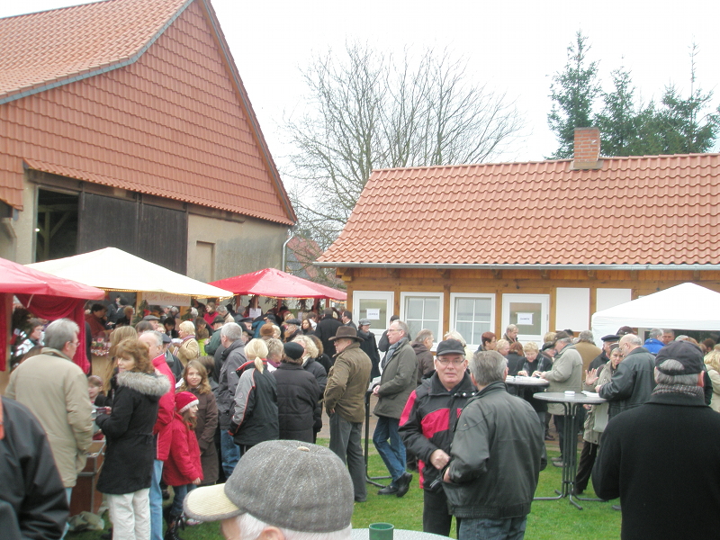 6. November 2009 - Der Weihnachtsmarkt ist gut besucht. Nach dem Gottesdienst und der Einweihung des Backhauses nehmen zahlreiche Besucher die Angebote der Vereine an.