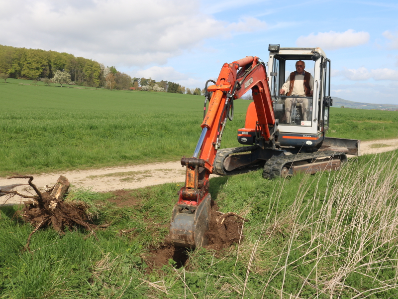 Mit dem Minibagger werden die alten Wurzeln gerodet - Foto vom 22.04.2016